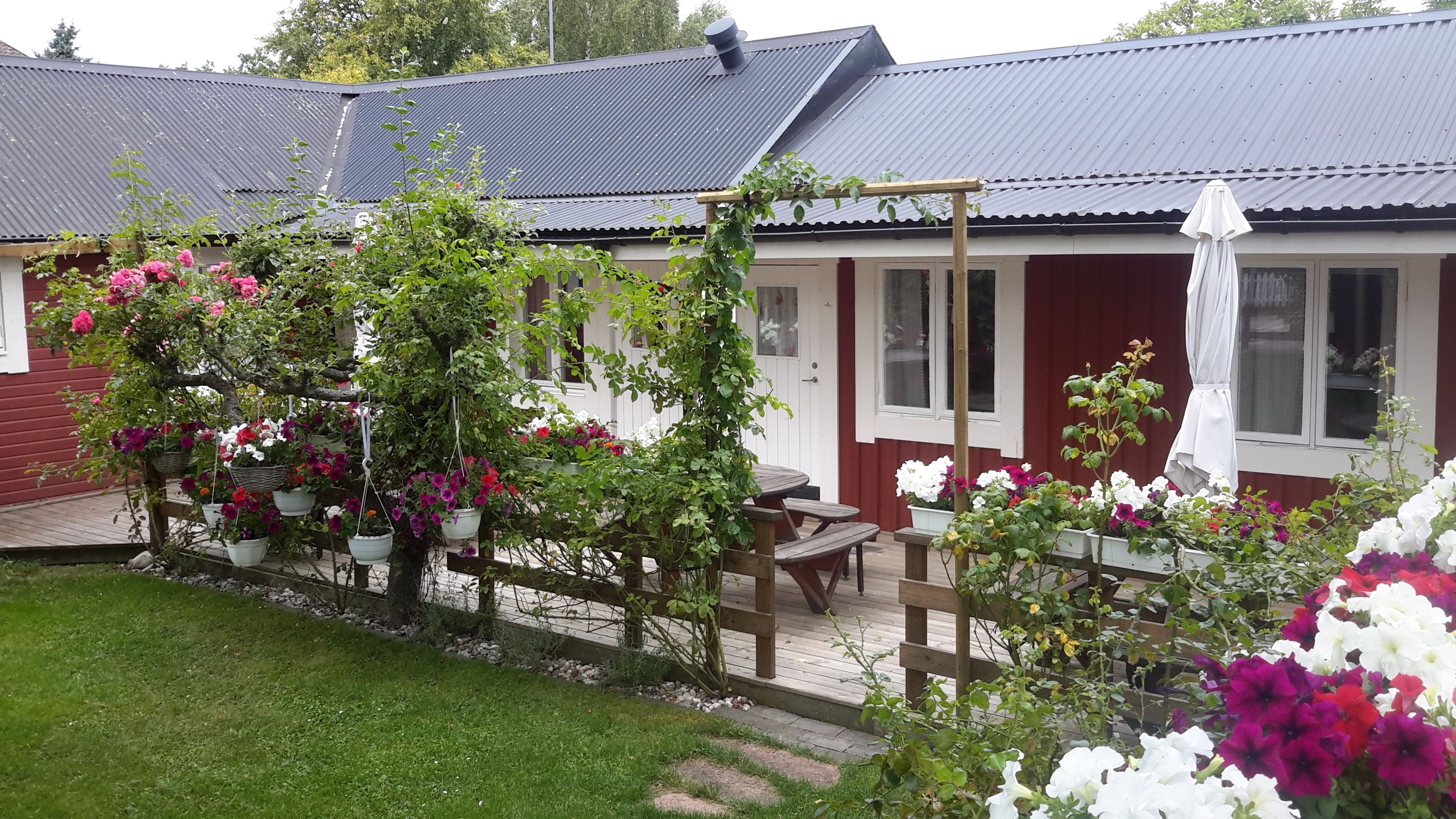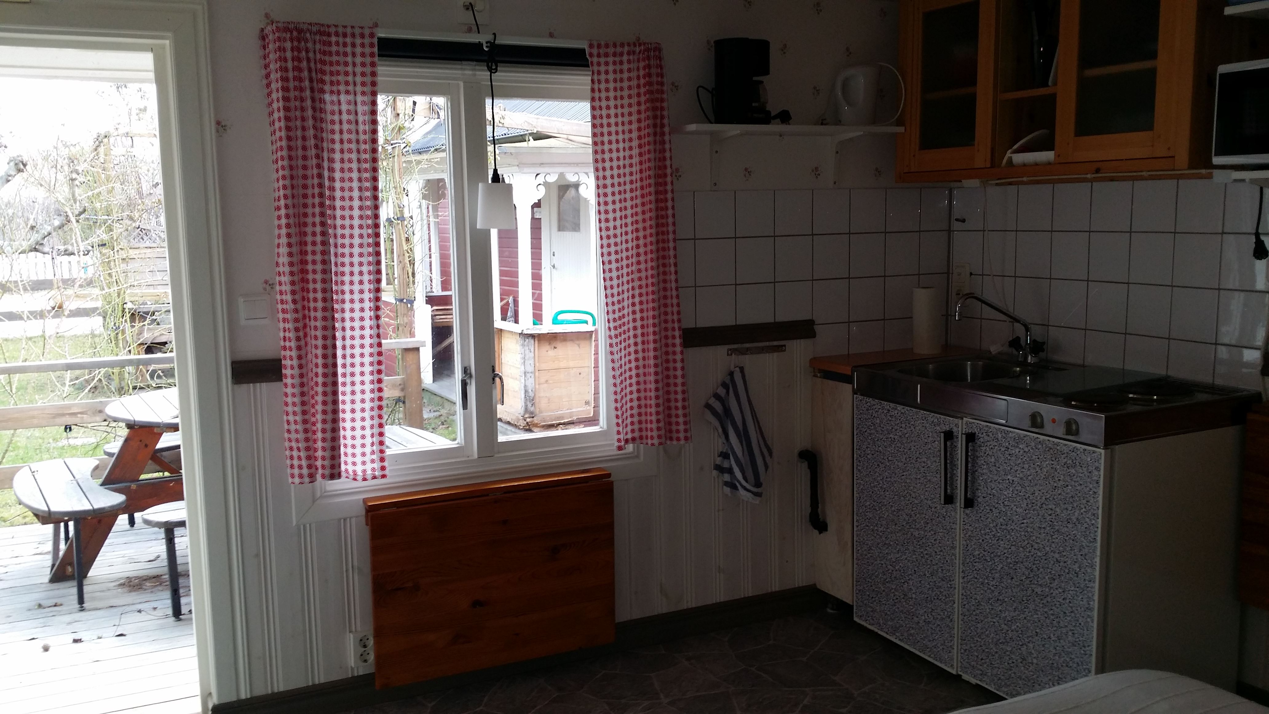 Room in row house with private entrance, 2 spring beds, 3-in-1 Trinette kitchen with H & C water. Coffeemaker. Access to shared WC/shower with three other rooms. Terrace outside, but BBQ-ing is only permitted on the grass. There is 1 house with 4 apartments on the lot, as well as 1 cottage. Guest is responsible for cleaning. Sheets not included! No smoking permitted indoors. Sorry, no pets allowed.