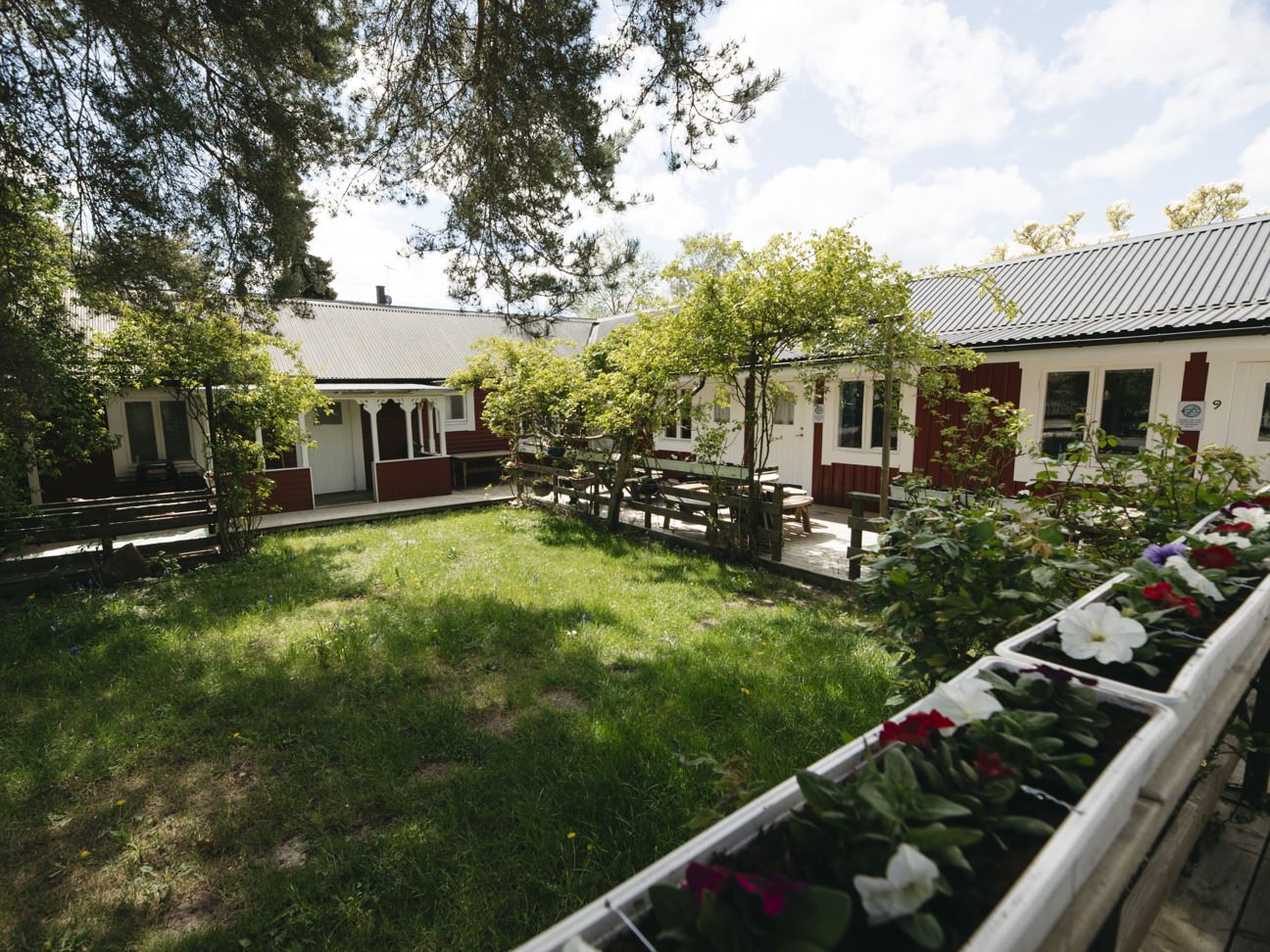 Room in row house with private entrance, 2 spring beds, 3-in-1 Trinette kitchen with H & C water. Coffeemaker. Access to shared WC/shower with three other rooms. Terrace outside, but BBQ-ing is only permitted on the grass. There is 1 house with 4 apartments