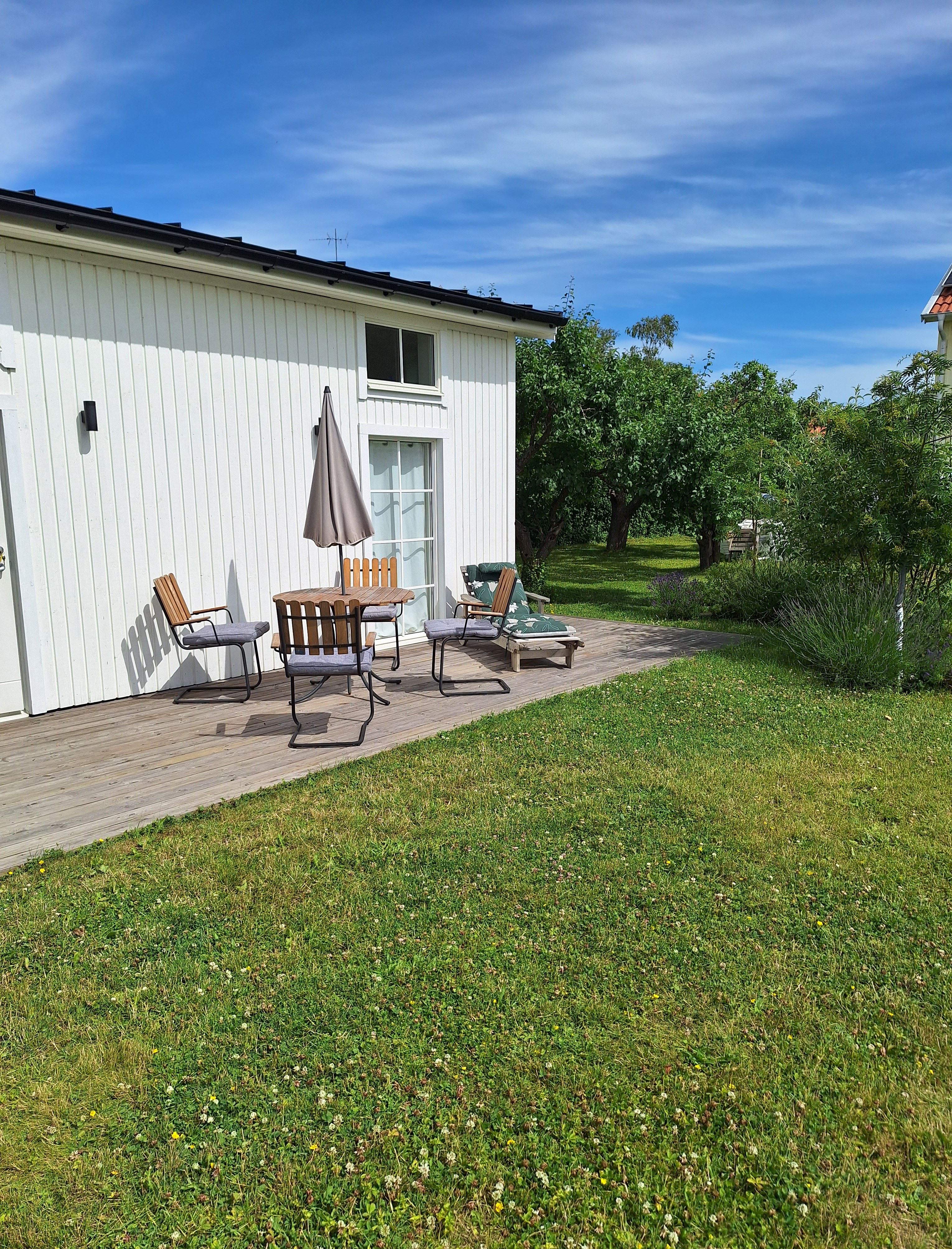 Fresh Attefallsstuga 25m² in Borgholm with proximity to the city's restaurants, shops, cafes and events. On the owner's plot. Own part of garden. ATTENTION! Sheets and final cleaning are included in the price.