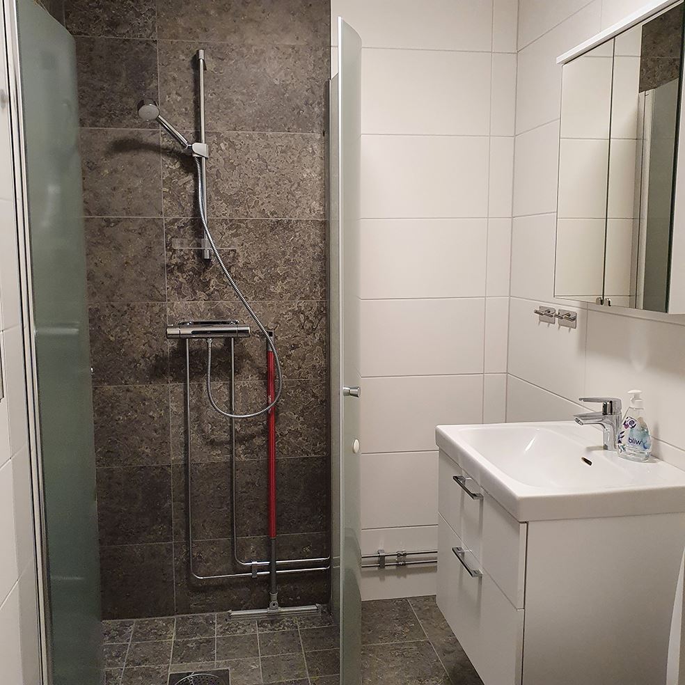 Accessibility: There is a movable ramp that enables wheelchair access into the apartment and out onto the balcony, but the toilet lacks armrests. Entrance door width 85 cm, threshold 9 cm high. Balcony door width 70 cm (77,5 cm), threshold 9 cm high. The width of the bathroom door is 70 cm and the threshold is 4 cm high.