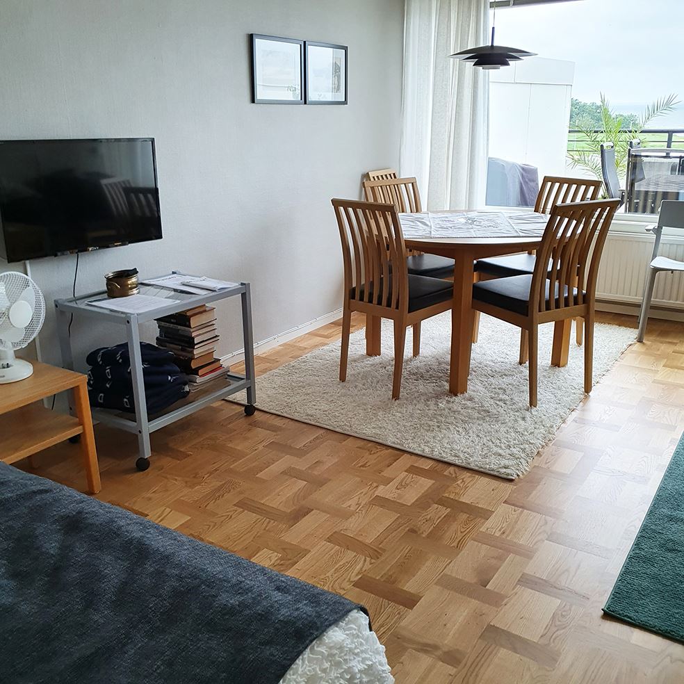 Apartment 48 m² at Strand Hotel with balcony and sea view. Third floor. Centrally located in Borgholm by the harbor with proximity to the city's range of restaurants, cafes, shopping, events etc.