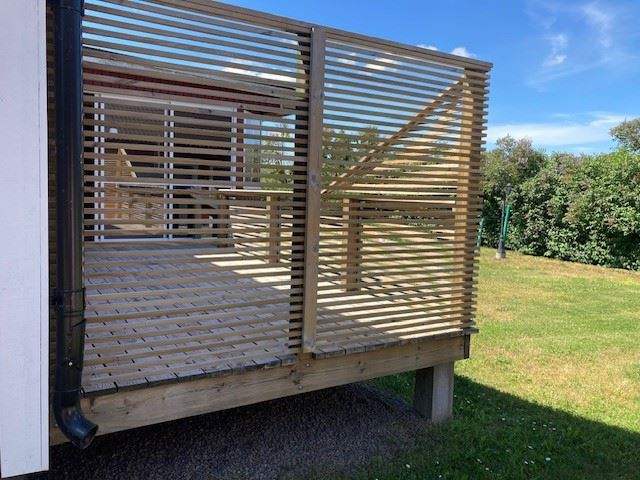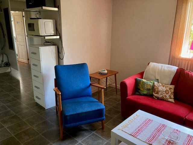 Cottage 50m² built in 2005 for 4 people with a combined kitchen and living room on the rural eastern side of Öland. Kitchen fully equipped with fridge and freezer combined (half/half), microwave, coffee maker, kettle. Living room area with a sofa bed for 2 people, TV. A bedroom with a double bed with spring mattresses. Bathroom with shower/WC and washing machine. From the kitchen/living room there is an exit to the glazed outdoor room 15m² and wooden terrace with outdoor furniture. Own plot 1200m².